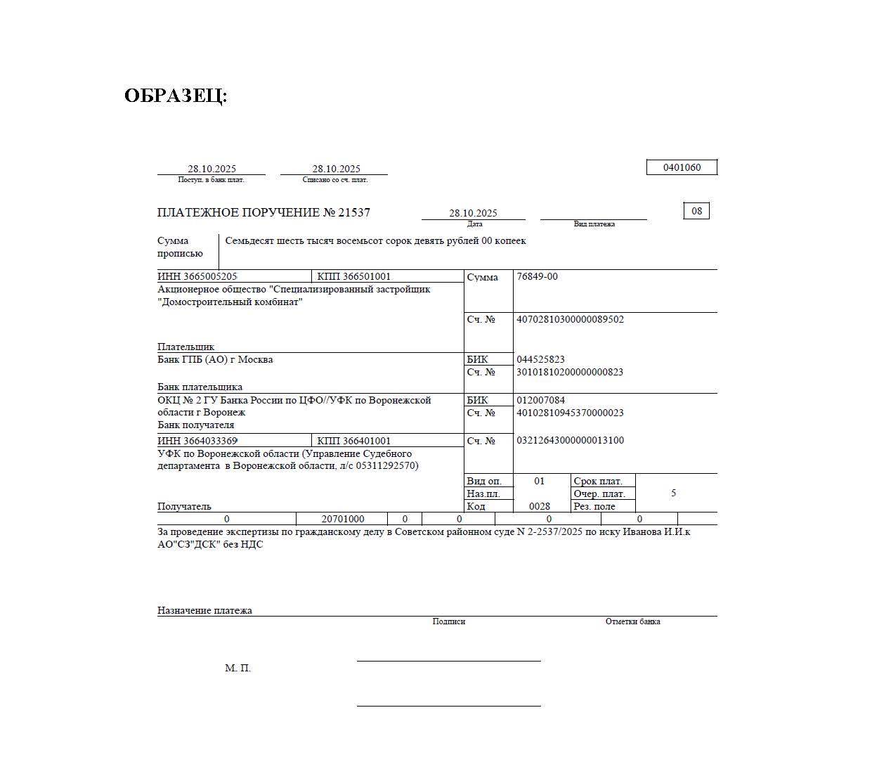ОКЦ № 2 ГУ Банка России по ЦФО//УФК по Воронежской области г. Воронеж